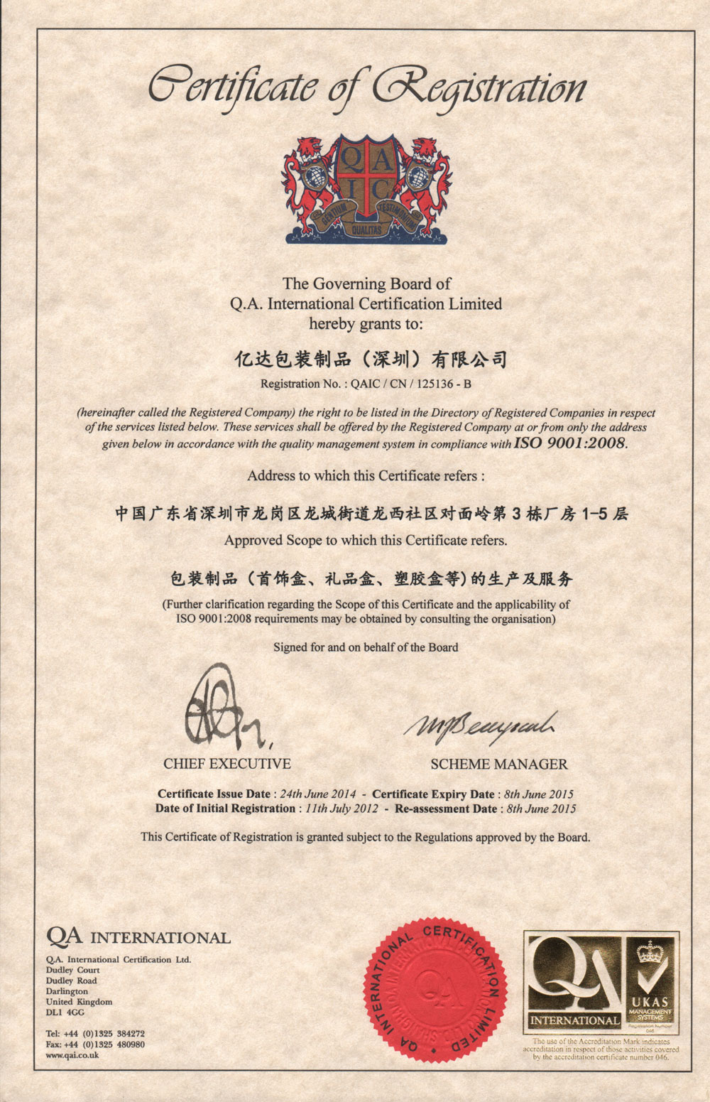 自设厂房于中国,拥有800多名熟练工人,月产量高达一百万件;生产设施采用严谨的品质监控系统。由于大部份生产项目均为客户度身订做的礼品盒订单,故本厂为属劳动密集型规模。
